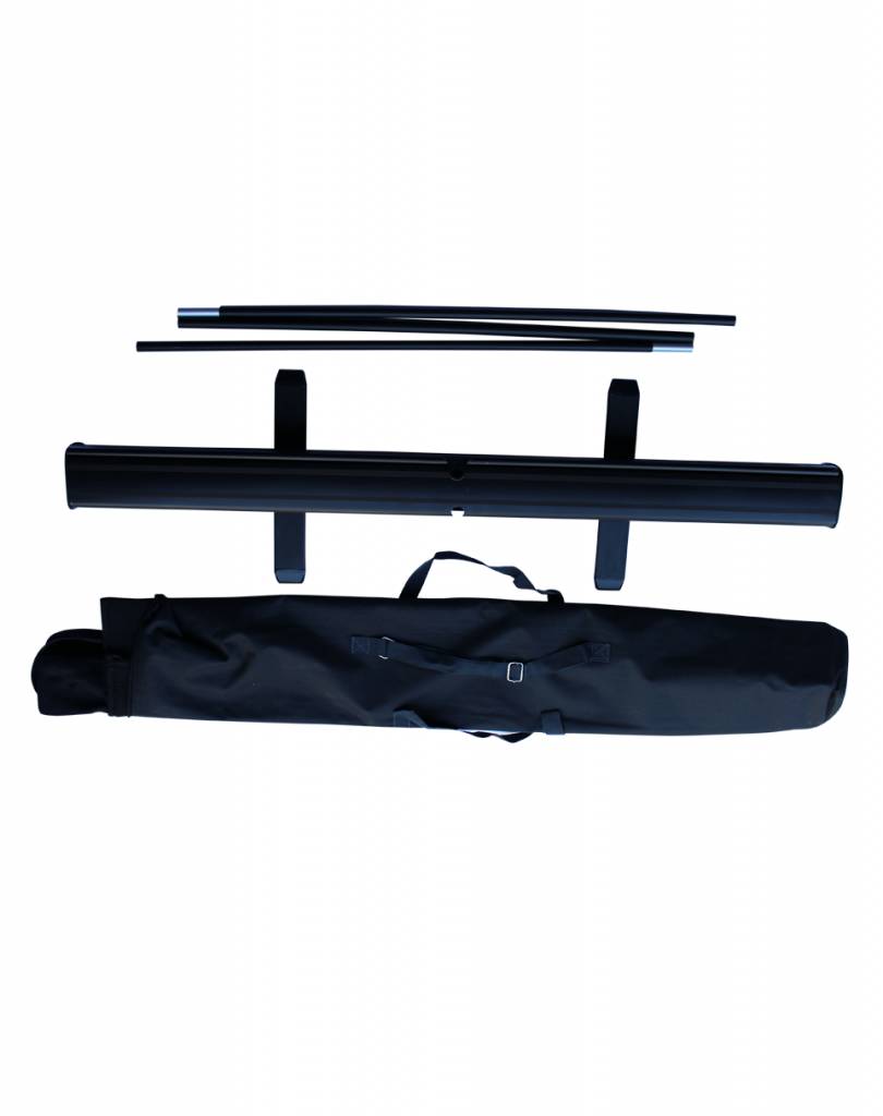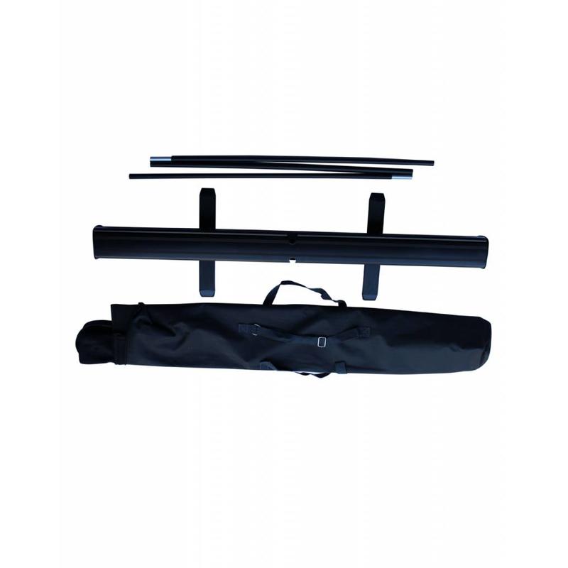 The roll up banner 100 can be set up within a minute. The product is lightweight, sturdy and is supplied a black nylon carrying bag, making it easy to transport it. The roll up black is meant to promote your product or company in an inexpensive way. The product can be used regularly, for various occasions. The roll up black is supplied with print and aluminium housing, and is highly suitable for shops, showrooms and window displays. The swivelling legs under the aluminium cassette give the roll up banner extra stability.