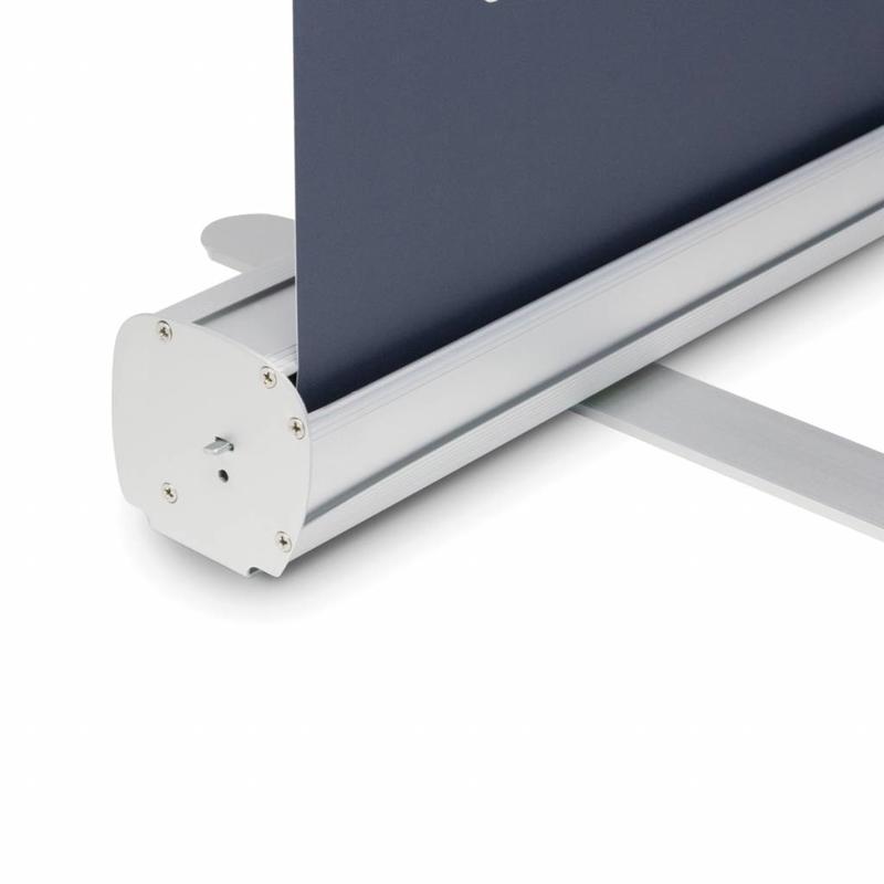 The roll up banner 80 can be set up within a minute. The product is lightweight, sturdy and is supplied a black nylon carrying bag, making it easy to transport it. The roll up classic is meant to promote your product or company in an inexpensive way. The product can be used regularly, for various occasions. The swivelling legs under the aluminium cassette give the roll up banner extra stability.