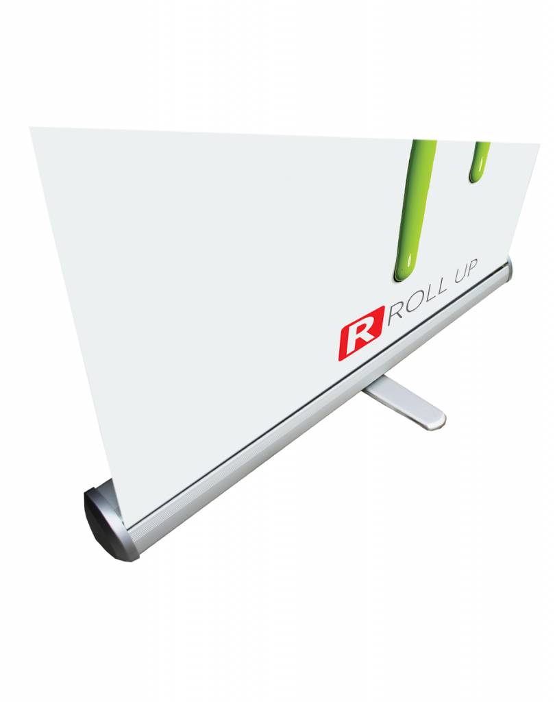 The roll up banner 100 can be set up within a minute. The product is lightweight, sturdy and is supplied a black nylon carrying bag, making it easy to transport it. The roll up comfort is meant to promote your product or company in an inexpensive way. The product can be used regularly, for various occasions. The roll up comfort is supplied with print and aluminium housing, and is highly suitable for shops, showrooms and window displays. The swivelling legs under the aluminium cassette give the roll up banner extra stability.