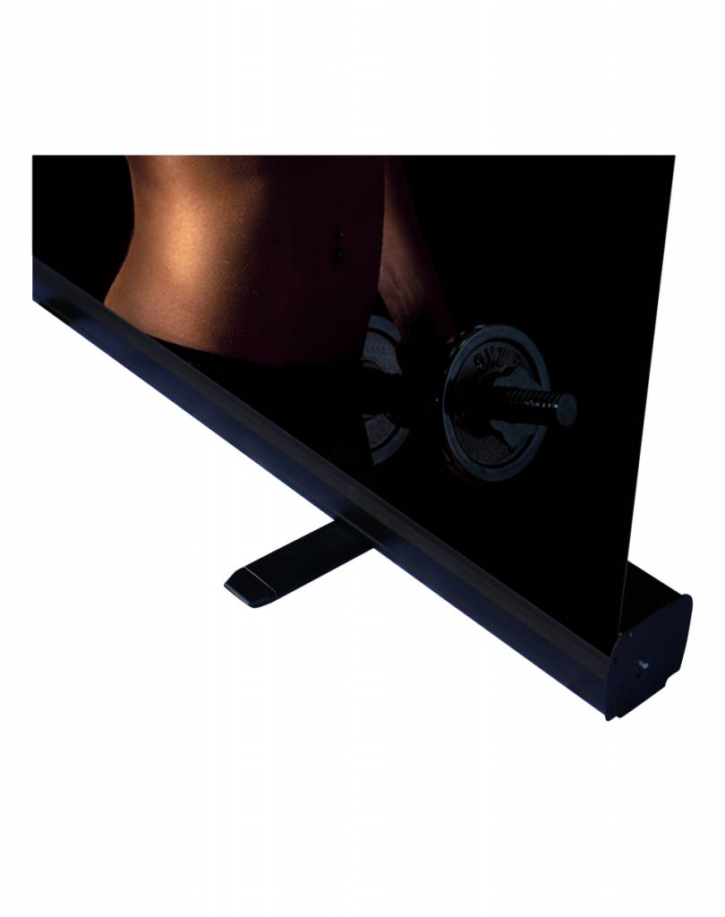 Il banner roll up 100 può essere montato in meno di un minuto. Il prodotto è leggero, resistente e viene consegnato con una sacca nera di nylon che permette di trasportarlo facilmente. Il roll up nero è studiato per promuovere il vostro prodotto o la vostra azienda con una spesa moderata. Il prodotto può essere usato regolarmente, per diverse occasioni. Il roll up nero viene consegnato con la stampa e una custodia in alluminio, ed è adatto ad essere esposto in negozi, showroom e vetrine. I piedi girevoli sotto la custodia in alluminio conferiscono al banner roll up maggiore stabilità.