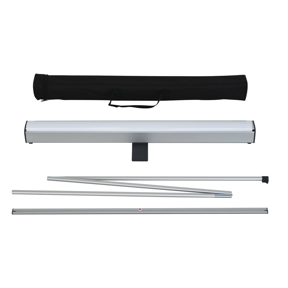 De roll up budget cassettes van Roll-up.com zijn zeer scherp geprijsd. De kwaliteit van dit zeer compacte systeem is goed. Deze cassette is leverbaar in een breedte van 85 en 100 cm. De hoogte van de print is 200 cm (totale hoogte van print inclusief cassette is 210 cm). De cassette is gemaakt van zilvergrijs aluminium. Aan beide zijden is een afdekplaat van donkergrijze kunststof gemonteerd. De cassette is voorzien goed klevend 3M tape, waar de print op wordt vastgeplakt. Bovenaan de print wordt een aluminium klemprofiel geklikt. Het klemprofiel kan gemakkelijk worden gehaakt achter de mast zodat de print op de juiste hoogte wordt gehouden.
