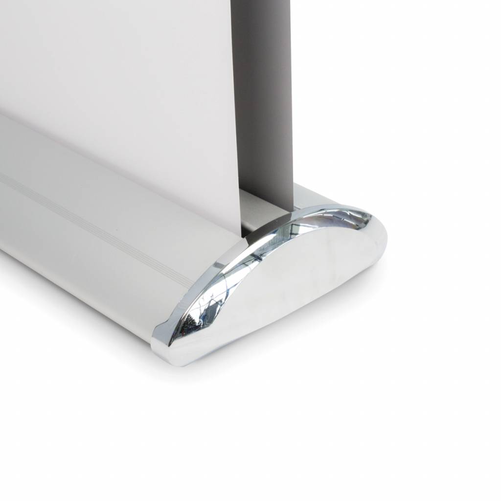 En dubbelsidig roll-up deluxe är perfekt för att förbättra din mässmonter eller pop-up-utställning vid ett populärt event. Eftersom besökare brukar komma från flera håll i dessa situationer är det viktigt från en reklamsynpunkt att vara synlig från alla håll inom mässan eller eventlokalen. Den lyxiga dubbelsidiga roll-up-kassetten är det perfekta verktyget för att visa upp dina produkter eller tjänster på utställningar eller (sport-) event. Det är enkelt att visa storskaliga tryck av högsta kvalitet (85 och 100 centimeter).